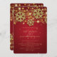 Moderne et élégant modèle d'"invitation de mariage de vacances or et rouge Enregistrer la date", avec des flocons de neige et des lumières à paillettes dorées sur fond rouge.