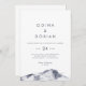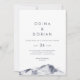 Cette faire-part de mariage décontractée de montagne est parfaite pour un mariage extérieur. Le design minimaliste moderne présente un paysage montagnard bleu ardoise et marine abstrait.