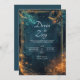 Éblouissez vos invités d'une faire-part de mariage qui rayonne de luxe et de romantisme cosmique. Le Faire-part de mariage d'élégance céleste de l'or de minuit est doté d'un arrière - plan profond fascinant avec des nébulas tourbillonnants en turquoise et en indigo, illuminé par la poussière céleste dorée et des bordures ornées de style art déco. Les touches dorées chatoyantes ajoutent une touche de sophistication royale, ce qui en fait le choix idéal pour les mariages du soir étoilés, les thèmes célestes ou les célébrations à cravate noire. Ce design allie la grandeur de l'univers à une élégance intemporelle, idéale pour les couples qui souhaitent faire une première impression éclatante.