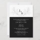 Faire-part de mariage noir et blanc. Feuillage dessiné au crayon. Détails sur le dos.