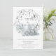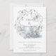 Parfait pour les mariages en hiver, et surtout les mariages festifs, ce design présente une élégante couronne de branches d'hiver, de baies et de feuilles avec derrière une forêt d'hiver aquarelle. La typographie serif simpliste est facilement personnalisée à vos propres détails. Sur le dos, au centre, se trouve une scène d'aquarelle de forêt gelée.