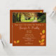 Beau designer Invitations pour un automne ou mariage de automne. Entièrement personnalisable. Ajoutez vos propres détails en quelques minutes. Actuellement customisé pour un mariage, mais pourrait aussi être utilisé pour une célébration fiançailles. Superbe image photographique d'arbres en automne faisant un couvert sur un chemin boisé qui s'éloigne au loin. Images de feuilles d'automne stylisées à l'avant et à l'arrière. Chaque invitation est complété par une enveloppe. Ce design d'invitation est également disponible dans d'autres combinaisons de couleurs.