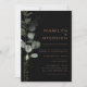 Ce faire-part de mariage à eucalyptus minimal et à forme noire est parfait pour compléter un mariage rustique. Le design présente un feuillage d'eucalyptus vert aquarelle dans un arrière - plan noir.