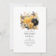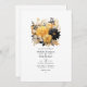 Faire-part de mariage floral noir et or. Idéal pour un mariage d'hiver. Le code QR au verso dirige vers votre site mariage où les gens peuvent en savoir plus et rsvp.