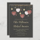Les coeurs d'art populaire rouge et blanc avec des flocons de neige créent une belle frontière au sommet de ce faire-part de mariage rustique. Les coeurs avec les étoiles dorées pendent d'une branche de vigne. Ils s'opposent vraiment à l'arrière - plan noir qui est applaudi par de minuscules flocons de neige. Le texte en or clair apparaît également contre l'arrière - plan noir. Les noms des couples mariages sont écrits dans un grand script décoratif très populaire. Cette invitation de mariage d'hiver est parfaite pour toute date, y compris les fêtes de Thanksgiving, Noël et surtout la Saint Valentin.