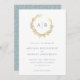 Ce faire-part de mariage botanique simple est parfait pour les couples modernes qui souhaitent célébrer leur grand jour avec une célébration à thème de la nature. Doté d'une fausse feuille d'or dessinée à la main avec les initiales du couple contre un arrière - plan blanc propre. Les détails de votre mariage sont illustrés par une typographie serif élégante qui met en évidence les noms. Revenir à un arrière - plan bleu éther avec un motif pétal dans un bleu pâle.