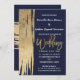Invitation Mariage d'or de la marine moderne Blue Gold Simple