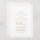 Cette carte minimaliste en or est parfaite pour un simple mariage. Le design romantique moderne présente une typographie classique d'or et de blanc associée à une calligraphie rustique mais élégante avec un style vintage lettré à la main. Personnalisable dans n'importe quelle couleur. Gardez le design simple et élégant, en l'état, ou personnalisez-le en ajoutant vos propres graphiques et artwork.