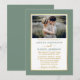 Sage photo minimaliste et élégant moderne vert et blanc Faire-part de mariage. Cadre Or. Script Gold.