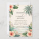 Offrez-vous une ambiance de destination avec ce design tropical serein. Des frondes de palmiers luxuriantes et des accents floraux vibrants évoquent une évasion exotique. La palette douce crée une atmosphère romantique et tranquille pour votre journée spéciale.
