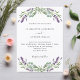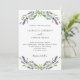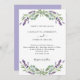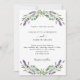 Une invitation pour la soirée. Un arrière - plan blanc décoré de fleurs de lavande et de verdure d'eucalyptus. Personnalisez et vos noms et détails. Retour : lavande, arrière - plan violet.