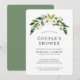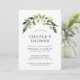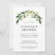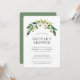 Invitation élégante de fleurs pour couple pour une fête de mariage avec une guirlande peinte à la main à l'aquarelle avec des roses blanches et de la verdure en haut. Le dos est d'une couleur verte unie et peut être changé à la couleur de votre choix. Ces invitations sont parfaites pour une fête de couple en été.
