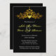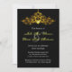 Elégant design d'invitation de mariage avec un lustre doré très détaillé sur un arrière - plan noir. Ce design est offert sur plusieurs produits de papeterie pour faire un beau thème pour tous vos papeteries mariages.