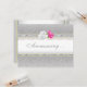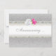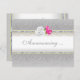 Faire-part de mariage élégant dans un décor en damas argenté et blanc perle avec des perles drapées et 3 roses, une rose blanche, 2 roses roses - Très élégant - REMARQUE : Il n'y a pas de vraies roses, argent, diamants, pierres précieuses, perles, métal précieux ou or sur ce produit en papier. Ceux-ci sont conçus artistiquement pour paraître réels par l'artiste.