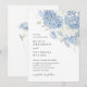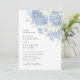Une invitation de mariage romantique avec un motif floral d'hydrangeas bleu poussiéreux, délicatement peint à la main dans des tons d'aquarelle douce.
