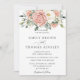 Cette invitation de mariage élégante présente un beau bouquet à l'aquarelle de fleurs teintées de rose, de fleurs ivoires et de feuillage vert. Conçue pour correspondre à notre collection de mariages Romance Blooms. Personnalisez-la facilement et rapidement avec vos détails, il suffit d'appuyer sur le bouton Personnaliser pour réorganiser et formater le style et l'emplacement du texte. (c) The Happy Cat Studio