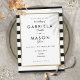 Invitation Mariage élégant noir et blanc rayure bordure or