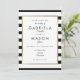 Cette invitation de mariage élégante présente une bordure de faux or élégante encadrant vos détails de mariage dans une typographie chic sur un fond rayé noir et blanc classique. Conçu par Thisisnotme©