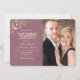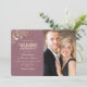 Invitation de mariage luxueuse et élégante, avec photo personnalisée du couple et dentelle florale dorée vintage.