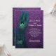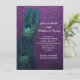 Magnifique fond pailleté violet vibrant avec des invitations de mariage à plumes de paon sarcelle élégantes. Cette invitation de mariage au paon sarcelle et violet est facilement personnalisable pour votre événement. Vous pouvez supprimer l'image de fond de l'arrière si vous souhaitez choisir votre propre couleur de fond uni comme le bleu sarcelle ou le violet pour correspondre à l'avant.