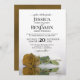 Cette faire-part de mariage est élégante, luxuriante et romantique. Il présente une magnifique photo d'un seul rose doré à long tige allongé sur son côté, réfléchissant dans l'eau avec des vagues et des ondulations. Le dos est marbré d'or ou de couleur jaune moutarde. Belle façon d'invitation vos amis et votre famille à partager dans votre journée spéciale.