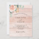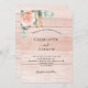 bois d'or rose comme arrière - plan. Décoré d'or rose et de fleurs roses rousses, de fleurs roses et de feuilles d'eucalyptus vert aquarellés, de sprigs, de verdure et d'une fausse feuille d'or. Personnalisez et ajoutez vos noms et les détails du mariage.