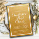 Ajoutez une ambiance élégante et moderne à votre invitation de mariage avec un style de calligraphie à fioritures sur un fond métallique doré brossé avec une typographie blanche et une superposition de bordure.