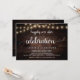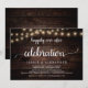 Belle invitation de célébration de bonheur éternel, Faire-part de mariage en fuite / carte d'invitation, sur fond de bois rustique de ferme, conception de lumières de chaîne. C'est parfait pour votre réception de mariage et votre fête de célébration après le mariage. Ajoutez vos détails dans la même police / lettrage.