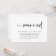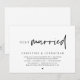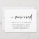 Carte d'invitation de mariage minimaliste moderne sur le thème du script, pour un mariage en fuite (juste marié). Elle est parfaite pour votre réception de mariage en fuite / fête de célébration post-mariage. Ajoutez vos détails dans une police / lettrage noir assorti.