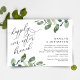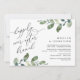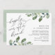 Magnifique design romantique moderne, sur le thème de l'aquarelle de feuilles d'eucalyptus en verdure, annonce de mariage en intimité, carte d'invitation (Brunch de Félicité Éternelle). C'est parfait pour votre réception de mariage et votre fête de célébration post-mariage. Ajoutez les détails de votre célébration de brunch / dîner en intimité. #TeeshaDerrick
