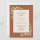 Elégante aquarelle vert feuillage botanique encadre vos détails mariages sur ces invitations de mariage en terre cuite avec vos informations de cérémonie en lettrage chic sur un arrière - plan d'ivoire. CORRESPONDRE des articles dans notre magasin.