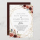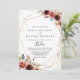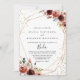 Cette faire-part de mariage espagnole de parties scintillant d'or géométrique est parfaite pour un mariage simple. Le design est composé de belles fleurs peintes à la main rose, rousse, bleue et bordeaux, associées à un feuillage vert, qui ornent un cadre de parties scintillant en or géométrique.