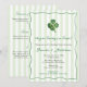 Cette invitation élégante en forme de trèfle vert et blanc serait parfaite pour une fête de mariage moderne et décontractée pour un couple avec un thème de St Patrick. Avec des rayures tendance, une bordure ondulée et un trèfle à quatre feuilles peint à la main. Vous pouvez changer les couleurs de tous les éléments (sauf le trèfle) via l'outil de conception.