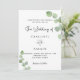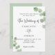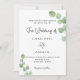 Un arrière - plan blanc décoré de sprigs de verdure d'eucalyptus. Personnalisez et votre nom et les détails de la cérémonie. Lettres de couleur noire. Retour : arrière - plan vert. Ajoutez votre propre URL à votre site mariage pour RSVP en ligne ou pour plus de détails.