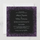 Ces invitations magnifiques de mariage ont un arrière - plan foncé et noir et une conception pourpre fascinante de regard de confettis tout autour des bords. Le texte est dans une couleur argentée.