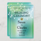 Un dégradé lumineux de vert et de bleu avec des lampes à cordes donne une humeur joyeuse et moderne. Inspiré par les célébrations du soir, ce design capte la magie de l'amour sous les étoiles. Idéal pour les couples qui souhaitent organiser une cérémonie animée en plein air.