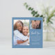 Cette petite carte bleue et blanche poussiéreuse a des espaces réservés pour deux tailles d'images pour remercier vos invités. Le dos de la carte a une fleur sauvage florale et de la place pour votre message manuscrit. Il peut être utilisé pour n'importe quelle occasion ou célébration pour montrer votre appréciation