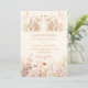 Une élégante invitation au mariage. Arrière - plan de couleur crème, beige, décoré de fleurs sauvages aquarellés en beige, rose.