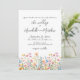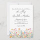 Invitation Vibrante de mariage dans le jardin botanique. Donnez le ton de votre journée spéciale avec un design gai et coloré inspiré des fleurs les plus brillantes de l’été. Cette invitation présente un mélange animé de fleurs roses, bleues, violettes, jaunes et oranges, accentuées par la verdure luxuriante, formant une bordure botanique vibrante au fond. La police foncée ajoute un contraste sophistiqué, avec un mélange de script manuscrit et de typographie serif classique pour un style poli mais accessible. Parfait pour les mariages d'été, ce design évoque le charme d'un jardin botanique ou d'une ferme en pleine floraison, ce qui en fait un lieu idéal pour des fêtes en plein air ou des rassemblements rustiques. Entièrement personnalisable, vous pouvez personnaliser le texte, les polices et la mise en page pour qu'il corresponde à votre vision. Disponible sous forme d'invitation à imprimer ou de fichier numérique téléchargeable, ce design est parfait pour apporter la beauté de la nature à vos détails mariages.