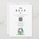 Dégustez vos invités avec une faire-part de mariage de dinosaures amusante et unique, avec une charmante mariée et mariée colorée T-Rex, dans une prairie fleur sauvage vibrante. Parfait pour un mariage d'inspiration boho, sur le thème du fleur sauvage, ce design intègre de belles fleurs d'aquarelle dans les tons bleu, rose, jaune, orange, pêche, violet, bordeaux, bleu marine et vert, évoquant la chaleur du printemps et de l'été. Le scénario moderne fantaisiste ajoute une touche de lucidité, tandis que les modèles faciles à utiliser vous permettent de personnaliser l’invitation avec les noms de la mariée et du marié, la date du mariage, et tous les détails essentiels. Le verso de l'invitation comprend des détails RSVP pratiques et un code QR reliant à votre site Web mariage. Cette oeuvre originale de l'artiste Catherine Sweetman capture l'essence joyeuse de votre grand jour avec ses illustrations amusantes T-Rex et sa typographie moderne. Un design vraiment unique que vos invités adoreront !