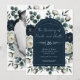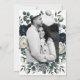 Carton d'invitation de mariage à fleurs modernes bleu foncé et blanc.
