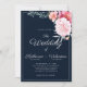 Invitation Mariage floral à écriture bleue marine