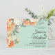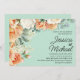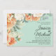 Faire-part de mariage floral moderne vert menthe et pêche aquarelle. Personnalisé avec les noms de la mariée et du marié dans une police manuscrite. Contactez-moi pour obtenir de l'aide sur vos personnalisations ou pour demander des produits Zazzle correspondants ou coordonnés supplémentaires pour vos événements.
