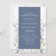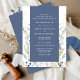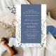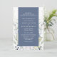 Amusez vos amis et votre famille avec cette belle faire-part de mariage. Design avec une verdure d'aquarelle exquise et des fleurs blanches et bleues encadrant une élégante bande de bleu mettant en valeur vos détails mariages. Style élégant et classique avec des formulations traditionnelles avec le nom des parents. De retour dans le même ton bleu que le groupe à l'avant. Également disponible avec un dos en bleu poussiéreux, ou en blanc avec floral. Une partie de notre collection "Elegant Bliss" avec une variété d'invitations de coordination, insérer des cartes, des cartes RSVP, des accessoires d'envoi, enregistrer les dates, des cartes de remerciement, ainsi que des affiches et des produits d'événement.