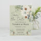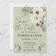 Ce magnifique design de faire-part de mariage présente des fleurs blanches, des eucalyptus et des cônes de pins, contre un arrière - plan vert sauge rustique. "Save the Date" est écrit sur le dessus en gros caractères. Customisez les détails pour répondre à vos besoins et n'oubliez pas de changer les initiales à l'arrière de la mariée et du marié !