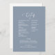 Détails du mariage Carte de boîtier. Élégant. Bleu et Blanc. Moderne. Navette. Typographie blanche.