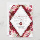 Faire-part de mariage florale bordeaux et rose aquarelle, en forme de losange. Nom, date et information de la Personnaliser.