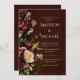 De beaux bouquets de fleurs bordeaux et crème mélangés à des verts bordant des polices modernes en blanc sur un élégant arrière - plan bordeaux ont été utilisés pour créer ce faire-part de mariage moderne. Parfait pour tous les mariages de saison. Coordonner la bordeaux à l'envers. Absolument stupéfiant !