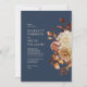 Faire-part de mariage floral de la chute de la marine. Cette faire-part de mariage élégante et rustique présente des feuilles d'aquarelle peints à la main, orange brûlé et terre cuite, des dahlias crème et beige, et de beaux roses de couleur rouille sur un arrière - plan bleu marine.