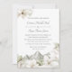 Faire-part de mariage de majesté de montagne fleuri avec des fleurs de magnolia d'aquarelle rêvée créant une vue pittoresque de la chaîne de montagnes pour votre mariage romantique à flanc de montagne.